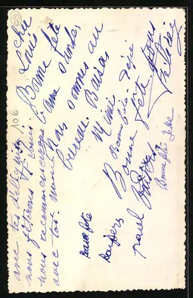 Personenbezogene Daten auf der Rückseite der Karte wurden durch blauen Textmarker unkenntlich gemacht. Die blauen Stellen sind auf die Vorderseite durchgeweicht und wirken sich negativ auf das Postkartenfoto aus