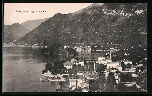 AK Campo /Lago di Como, Ortsansicht mit See und Bergen