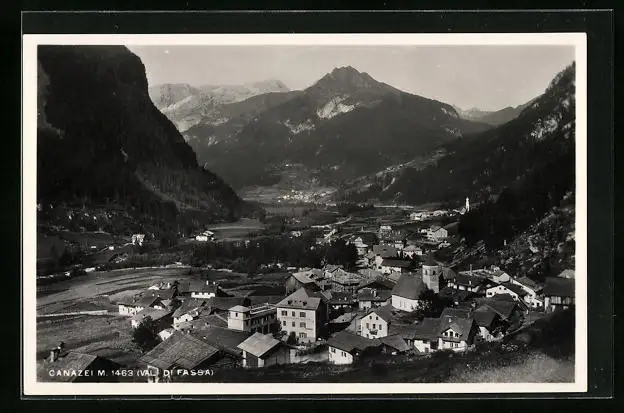 AK Canazei (Val di Fassa), Totalansicht aus der Vogelschau