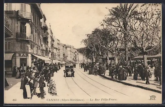 AK Cannes /Alpes-Maritimes, La Rue Félix-Faure avec des passants et une voiture