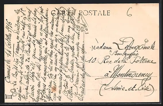 Personenbezogene Daten auf der Rückseite der Karte wurden durch blauen Textmarker unkenntlich gemacht. Die blauen Stellen sind auf die Vorderseite durchgeweicht und wirken sich negativ auf das Postkartenfoto aus