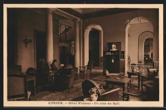 AK Cannes, Hôtel Windsor, Un coin du Hall