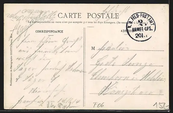 gelaufen 1914, Stempelspur, guter Zustand