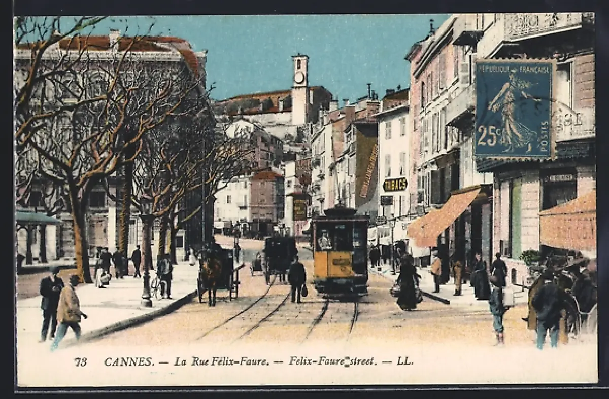 AK Cannes, La Rue Félix-Faure, Strassenbahn