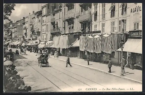 AK Cannes, La Rue Félix-Faure animée avec passants et commerces