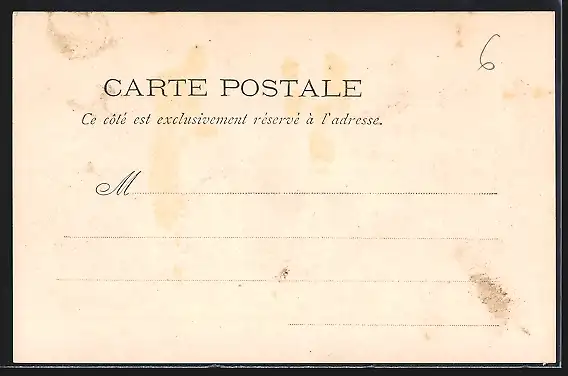 Personenbezogene Daten auf der Rückseite der Karte wurden durch blauen Textmarker unkenntlich gemacht. Die blauen Stellen sind auf die Vorderseite durchgeweicht und wirken sich negativ auf das Postkartenfoto aus