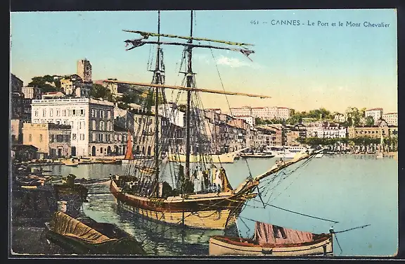 AK Cannes, Le Port et le Mont Chevalier, Hafen