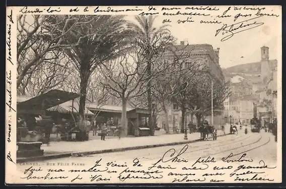 AK Cannes, Rue Félix Faure avec calèches et passants