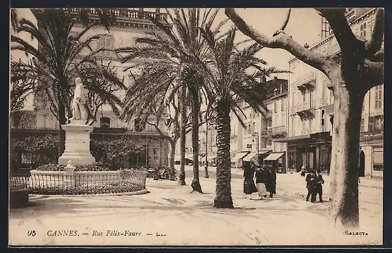 AK Cannes, Rue Félix-Faure avec statue et palmiers