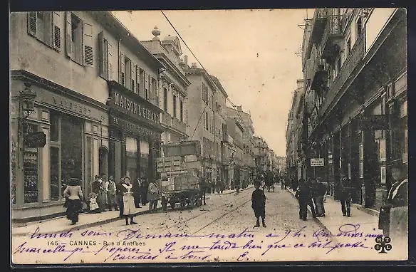 AK Cannes, Rue d`Antibes animée avec passants et commerces