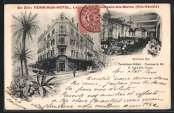 AK Cannes, Terminus-Hôtel avec vue sur le bâtiment et l`American Bar