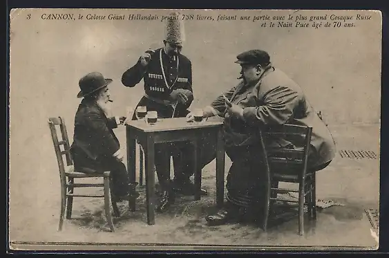 AK Cannon, le Colosse Géant Hollandais faisant une partie avec le plus grand Cosaque Russe et le Nain Puce age de 70 ans