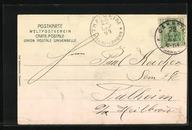 alte Ansichtskarte, gelaufen 1904, Eckknicke re. unten, guter Zustand