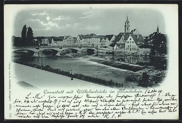 AK Cannstatt, Ortsansicht mit Wilhelmsbrücke