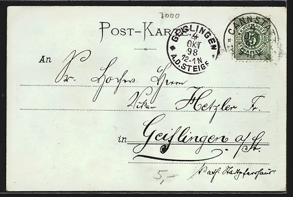 alte Ansichtskarte, gelaufen 1898, guter Zustand