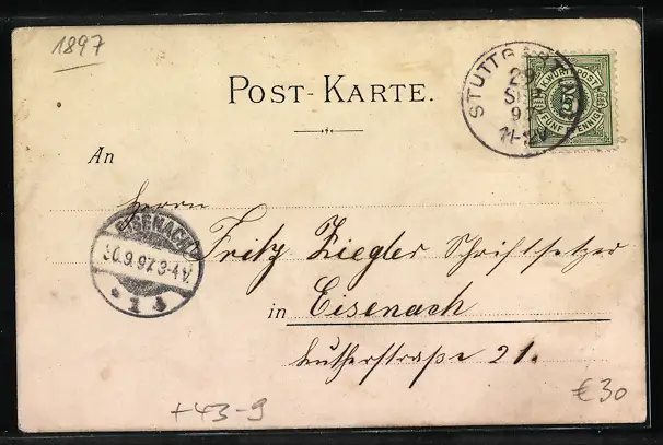 alte Ansichtskarte, gelaufen 1897, guter Zustand