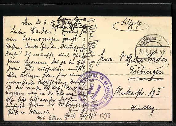 alte Ansichtskarte, gelaufen 1917, guter Zustand