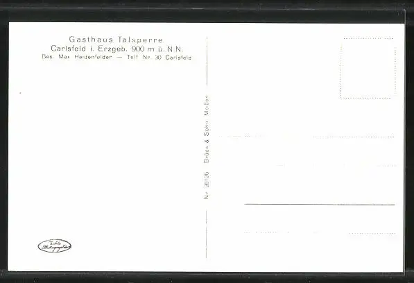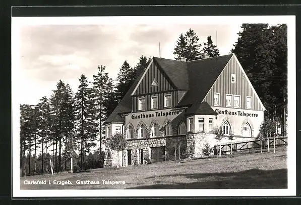 AK Carlsfeld i. Erzgeb., Gasthaus Talsperre, Inh. Max Heidenfelder