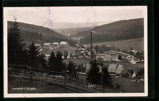 AK Carlsfeld i. Erzgeb., Ortsansicht mit Umland