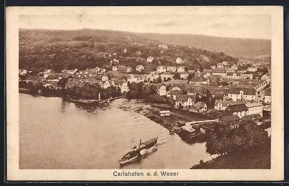 AK Carlshafen a. d. Weser, Dampfschiff legt ab