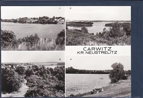 AK Carwitz Kr. Neustrelitz 4.Ansichten Am Schmalen Luzin - Blick vom Hauptmannsberg zum Carwitzer See - Blick vom Hauptmannsberg nach Carwitz und zum Schmalen Luzin - Badestelle am Schmalen Luzin, nicht gelaufen von ca. 1983
