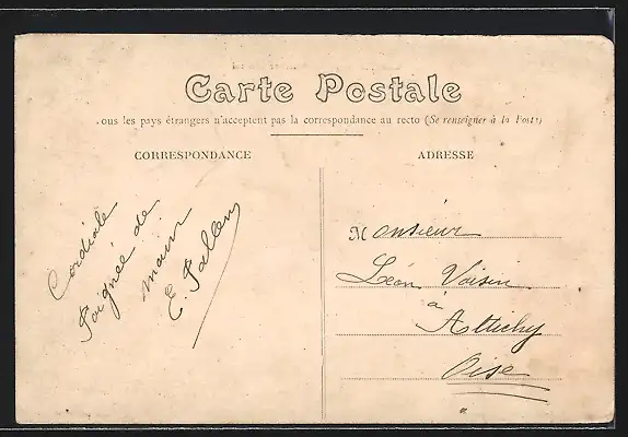 Personenbezogene Daten auf der Rückseite der Karte wurden durch blauen Textmarker unkenntlich gemacht. Die blauen Stellen sind auf die Vorderseite durchgeweicht und wirken sich negativ auf das Postkartenfoto aus