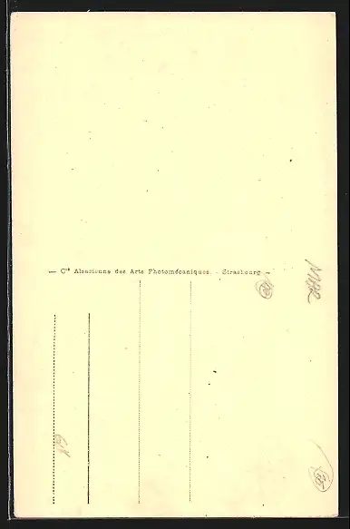 Personenbezogene Daten auf der Rückseite der Karte wurden durch blauen Textmarker unkenntlich gemacht. Die blauen Stellen sind auf die Vorderseite durchgeweicht und wirken sich negativ auf das Postkartenfoto aus