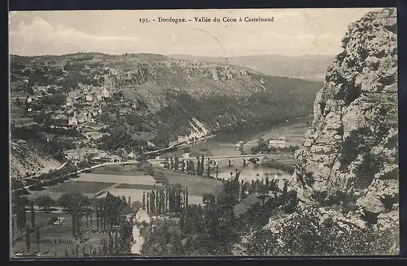 AK Castelnaud, Vallée du Céou avec pont et falaises majestueuses