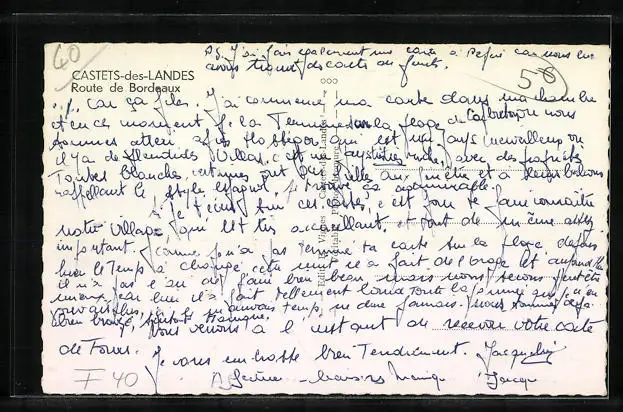 Personenbezogene Daten auf der Rückseite der Karte wurden durch blauen Textmarker unkenntlich gemacht. Die blauen Stellen sind auf die Vorderseite durchgeweicht und wirken sich negativ auf das Postkartenfoto aus