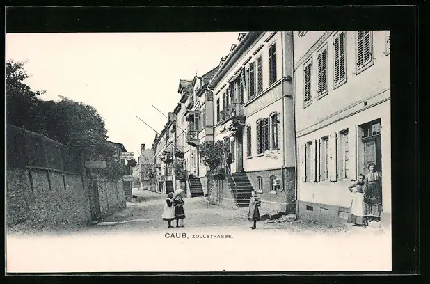 AK Caub, Zollstrasse mit Gasthaus Grünenwald