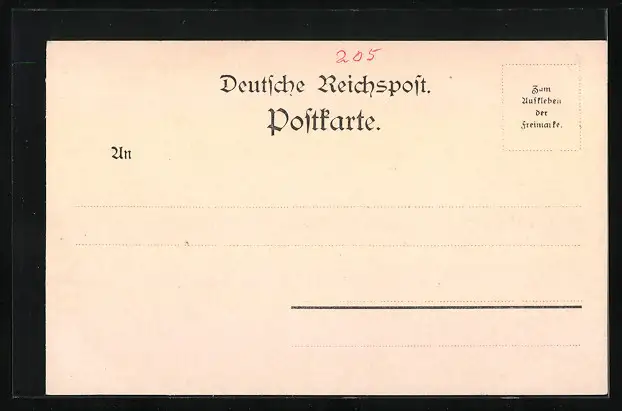 Personenbezogene Daten auf der Rückseite der Karte wurden durch blauen Textmarker unkenntlich gemacht. Die blauen Stellen sind auf die Vorderseite durchgeweicht und wirken sich negativ auf das Postkartenfoto aus