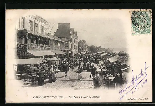 AK Caudebec-en-Caux, Le Quai un Jour de Marché