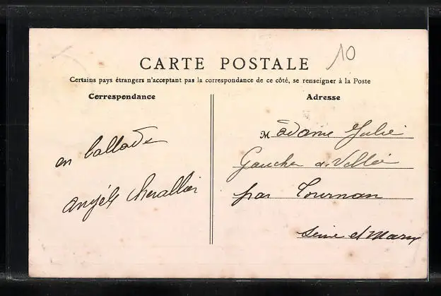 Personenbezogene Daten auf der Rückseite der Karte wurden durch blauen Textmarker unkenntlich gemacht. Die blauen Stellen sind auf die Vorderseite durchgeweicht und wirken sich negativ auf das Postkartenfoto aus