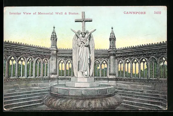 AK Cawnpore, Interior View of Memorial Well & Statue