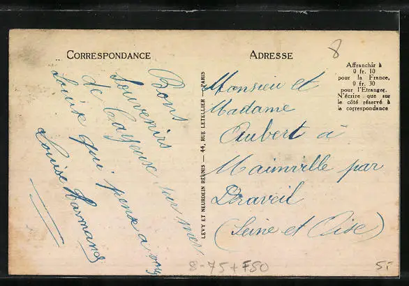 Personenbezogene Daten auf der Rückseite der Karte wurden durch blauen Textmarker unkenntlich gemacht. Die blauen Stellen sind auf die Vorderseite durchgeweicht und wirken sich negativ auf das Postkartenfoto aus