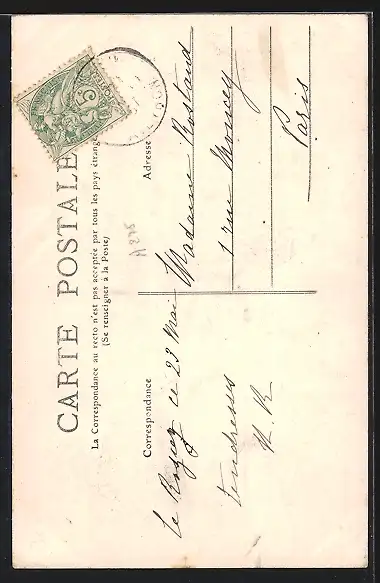 Personenbezogene Daten auf der Rückseite der Karte wurden durch blauen Textmarker unkenntlich gemacht. Die blauen Stellen sind auf die Vorderseite durchgeweicht und wirken sich negativ auf das Postkartenfoto aus