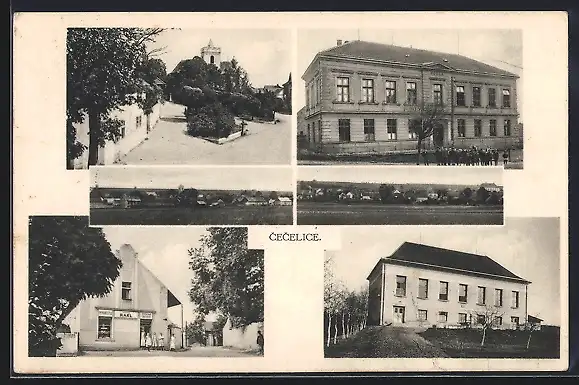AK Cecelice, Gebäudeanicht, Geschäft, Ortspartie