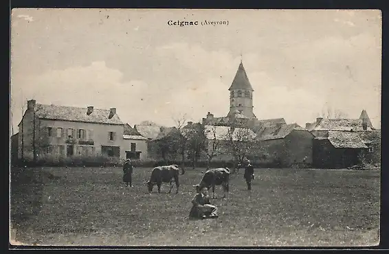 AK Ceignac, Partie am Ortsrand mit Rindern