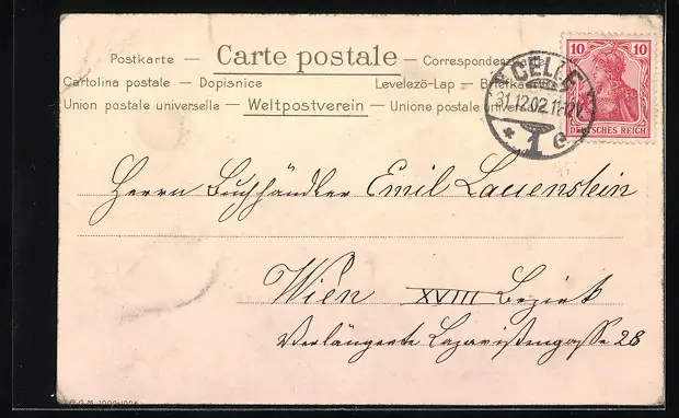gelaufen 1902, Eckknick re. unten und li. oben, guter Zustand