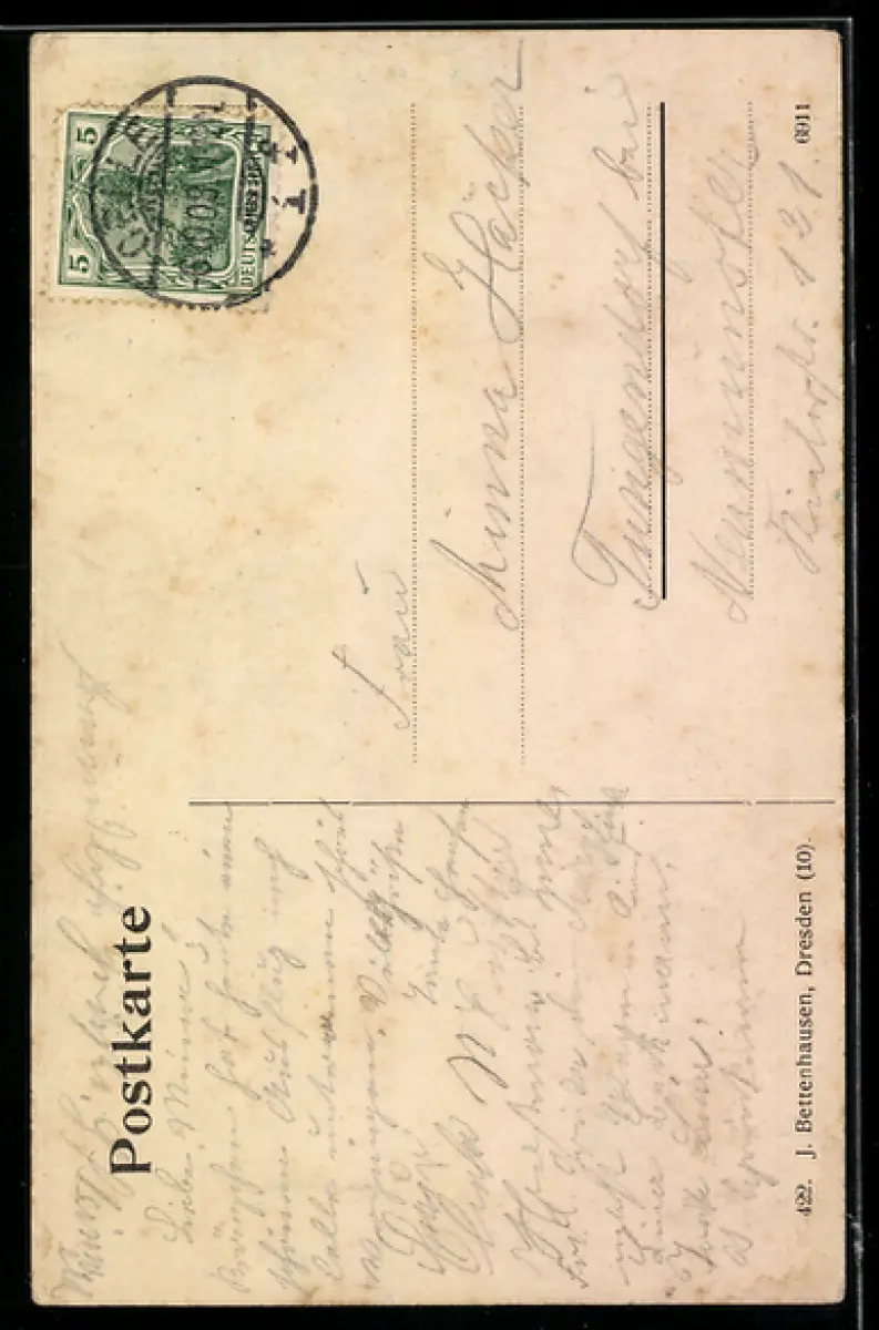 gelaufen 1908, Einriss unten mittig, guter Zustand
