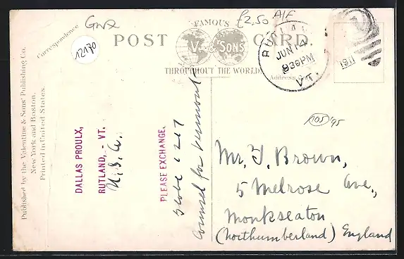 gelaufen 1911, Eckknick re. oben, Bugspur re. unten, guter Zustand