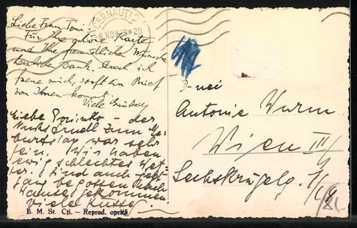 alte Ansichtskarte, gelaufen, Briefmarke entfernt, guter Zustand