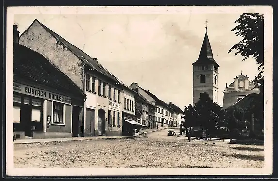 AK Cernovice, Teilansicht mit Kirchturm