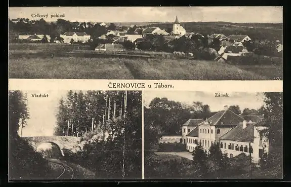 AK Cernovice u Tábora, Celkovy pohled, Viadukt, Zámek