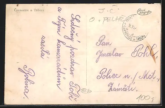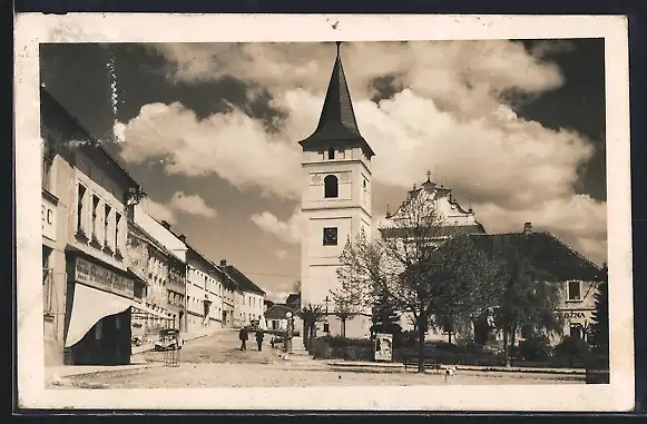 AK Cernovice u Tabora, Strassenpartie mit Geschäften und Turmgebäude