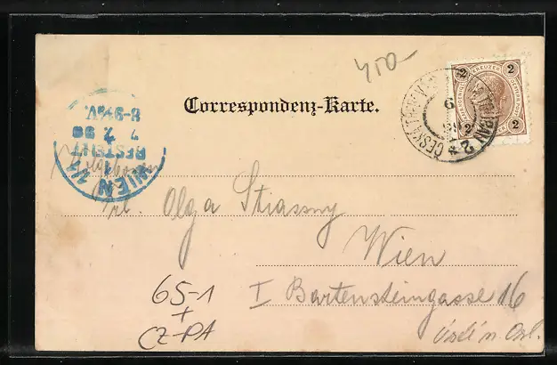 alte Ansichtskarte, gelaufen 1899, geklebter Eckknick re. oben, guter Zustand