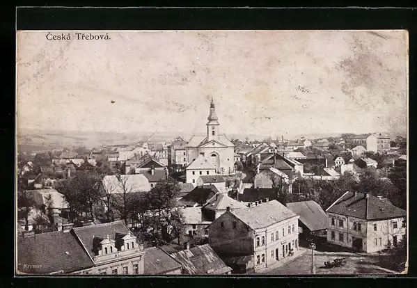 AK Ceská Trebová, Ortspartie aus der Vogelschau