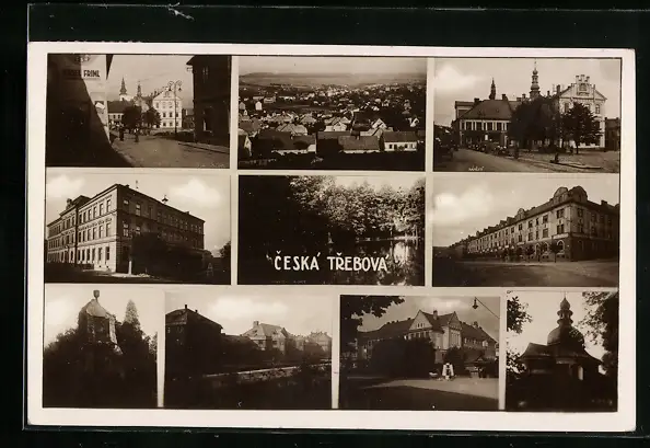 AK Ceska Trebova, Strassenpartie, Panorama und Kirche