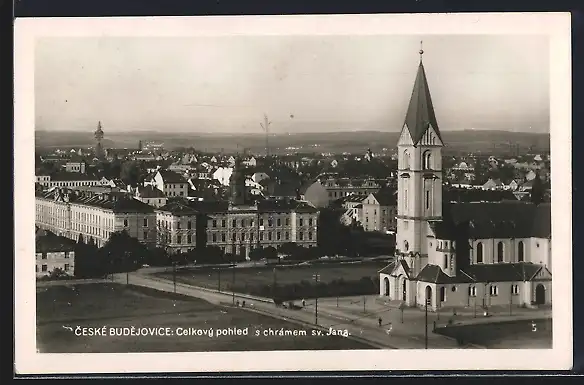 AK Ceskè Budejovice, Celkovy pohled s chràmem sv. Jana