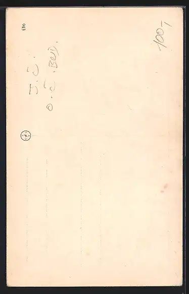Personenbezogene Daten auf der Rückseite der Karte wurden durch blauen Textmarker unkenntlich gemacht. Die blauen Stellen sind auf die Vorderseite durchgeweicht und wirken sich negativ auf das Postkartenfoto aus